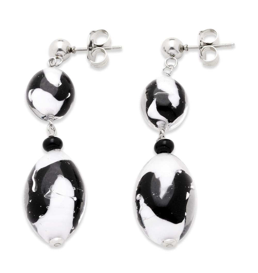 Χειροποίητα σκουλαρίκια από γυαλί Μουράνο και ατσάλι